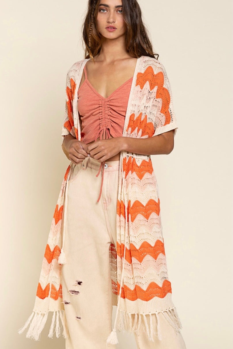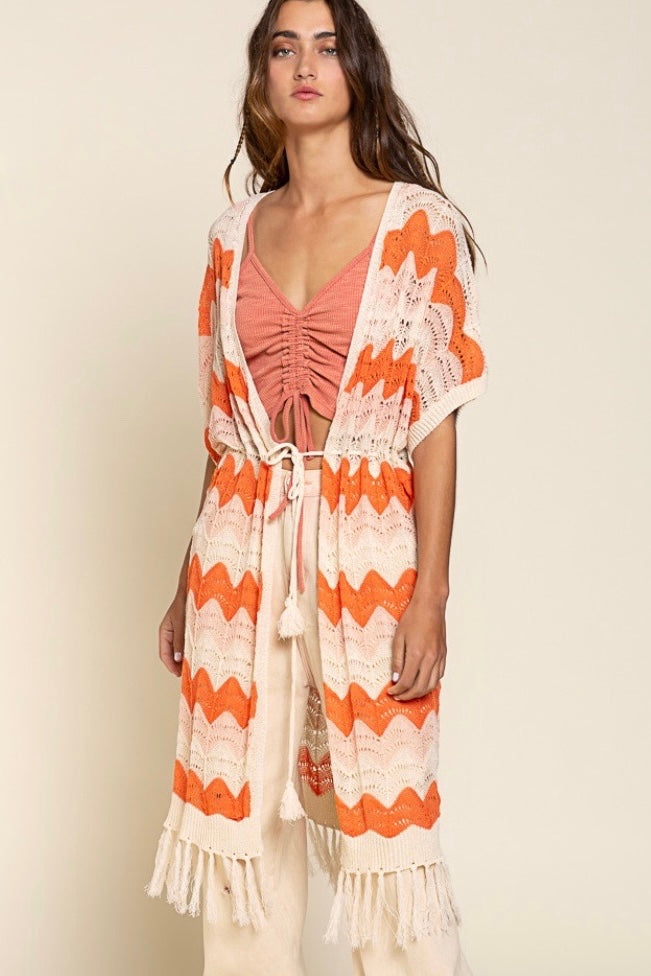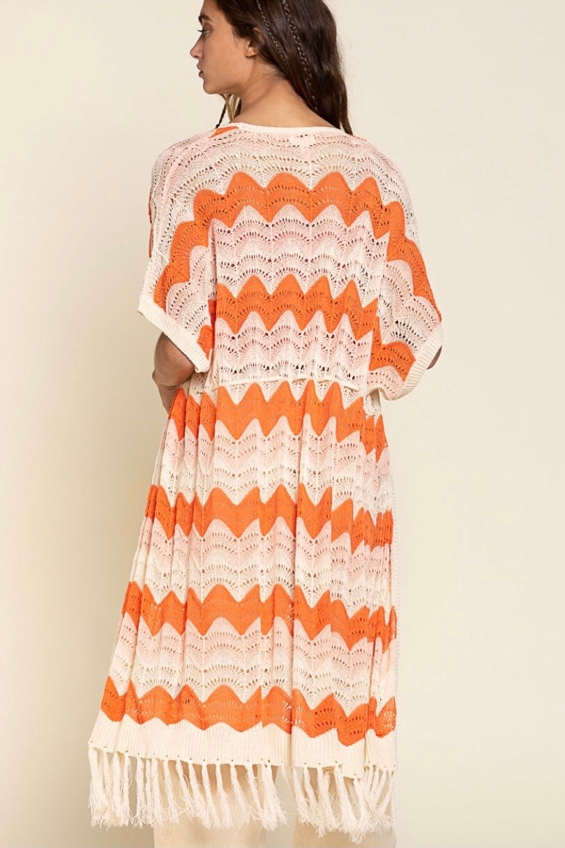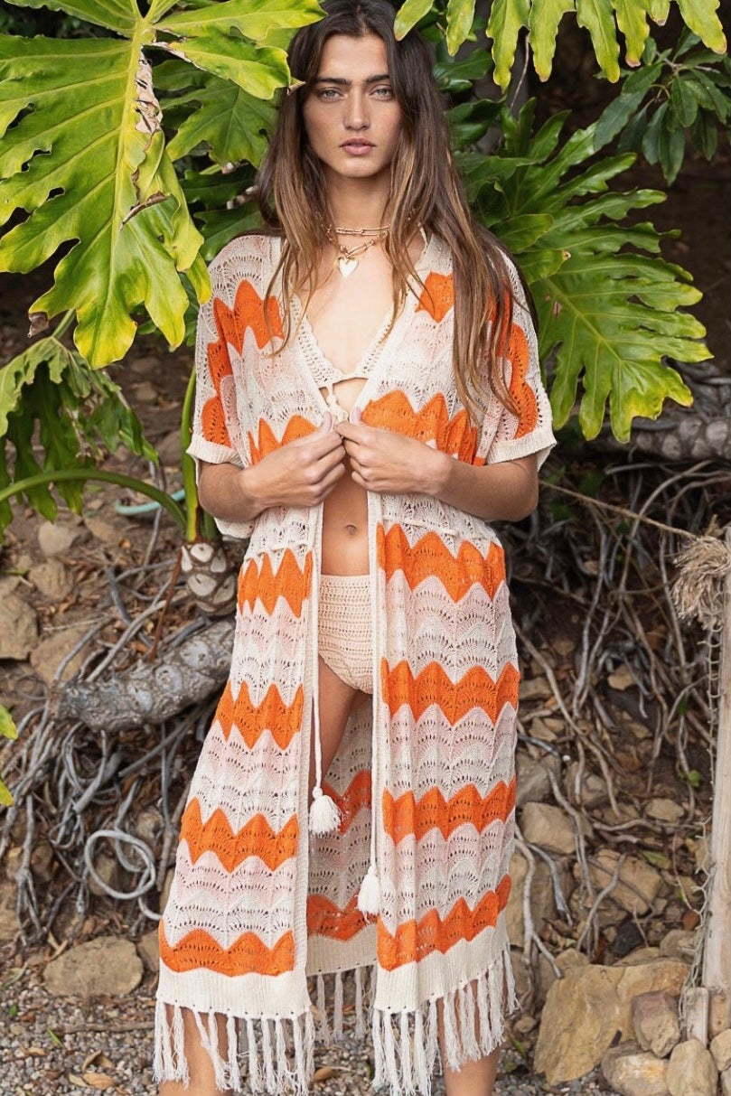 The Tropics Zig Zag Striped Crochet Beach Cardi with Fringe