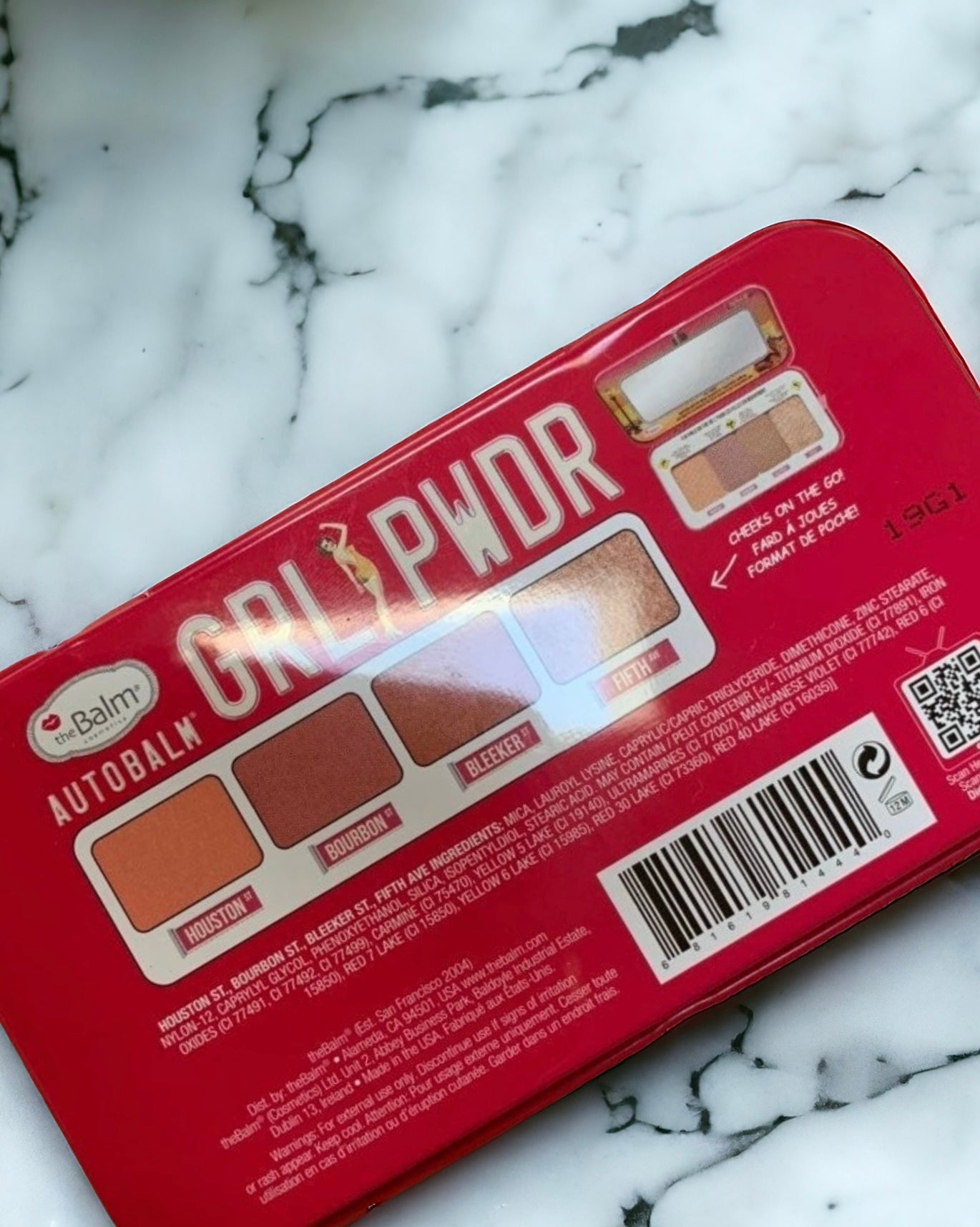 Houston St., Bourbon St., Bleeker St., Fifth Ave INGREDIENTS: MICA, LAUROYL LYSINE, CAPRYLIC/CAPRIC TRIGLYCERIDE, DIMETHICONE, ZINC STEARATE, NYLON-12, CAPRYLYL GLYCOL, PHENOXYETHANOL, SILICA, ISOPENTYLDIOL, STEARIC ACID. MAY CONTAIN / PEUT CONTENIR [+/- TITANIUM DIOXIDE (CI 77891), IRON OXIDES (CI 77491, CI 77492, CI 77499), CARMINE (CI 75470), YELLOW 5 LAKE (CI 19140), ULTRAMARINES (CI 77007), MANGANESE VIOLET (CI 77742), RED 6 (CI 15850), RED 7 LAKE (CI 15850), YELLOW 6 LAKE (CI 15985), RED 30 LAKE (CI 73360), RED 40 LAKE (CI 16035)]