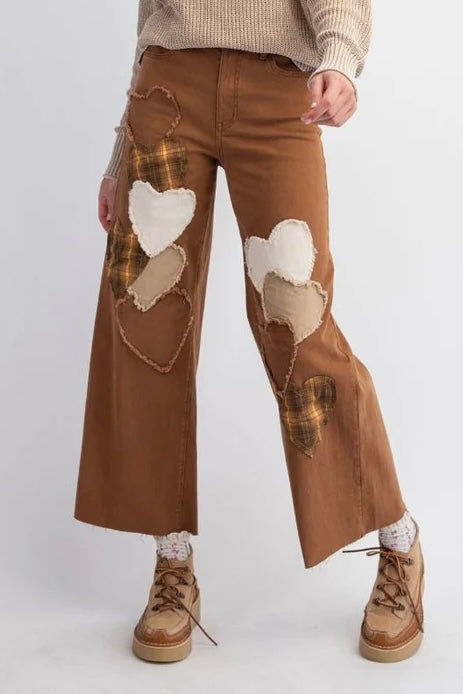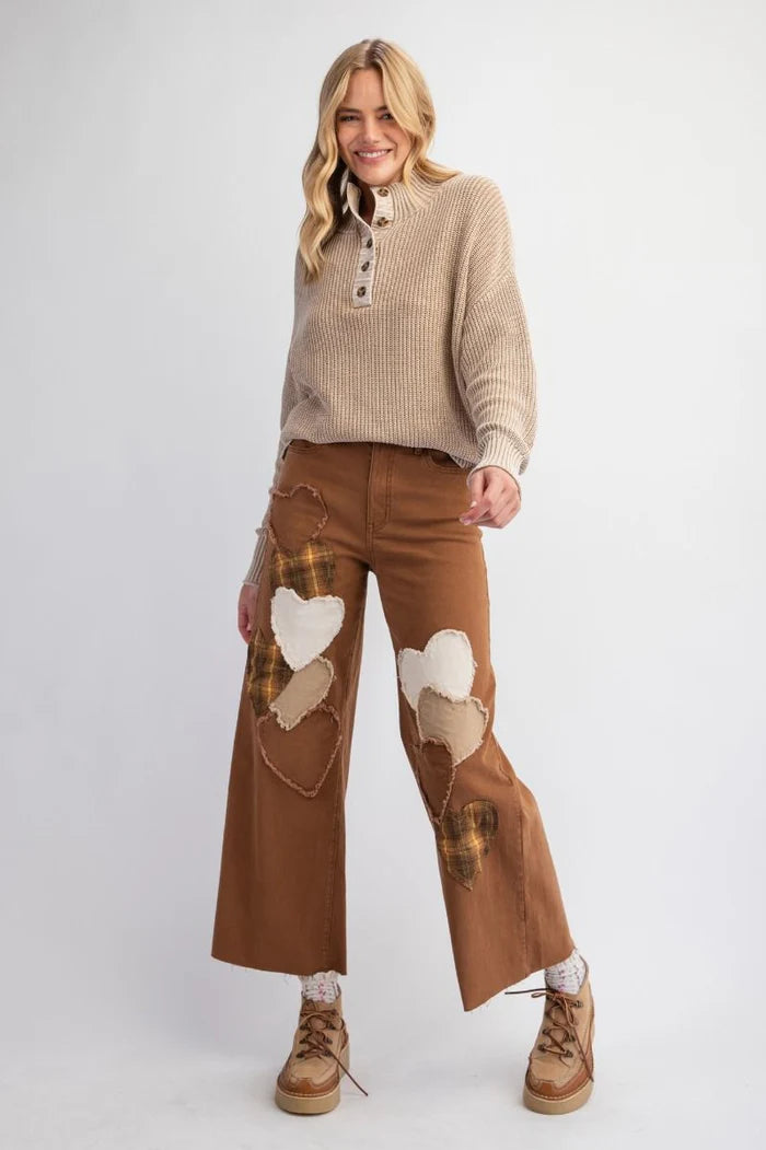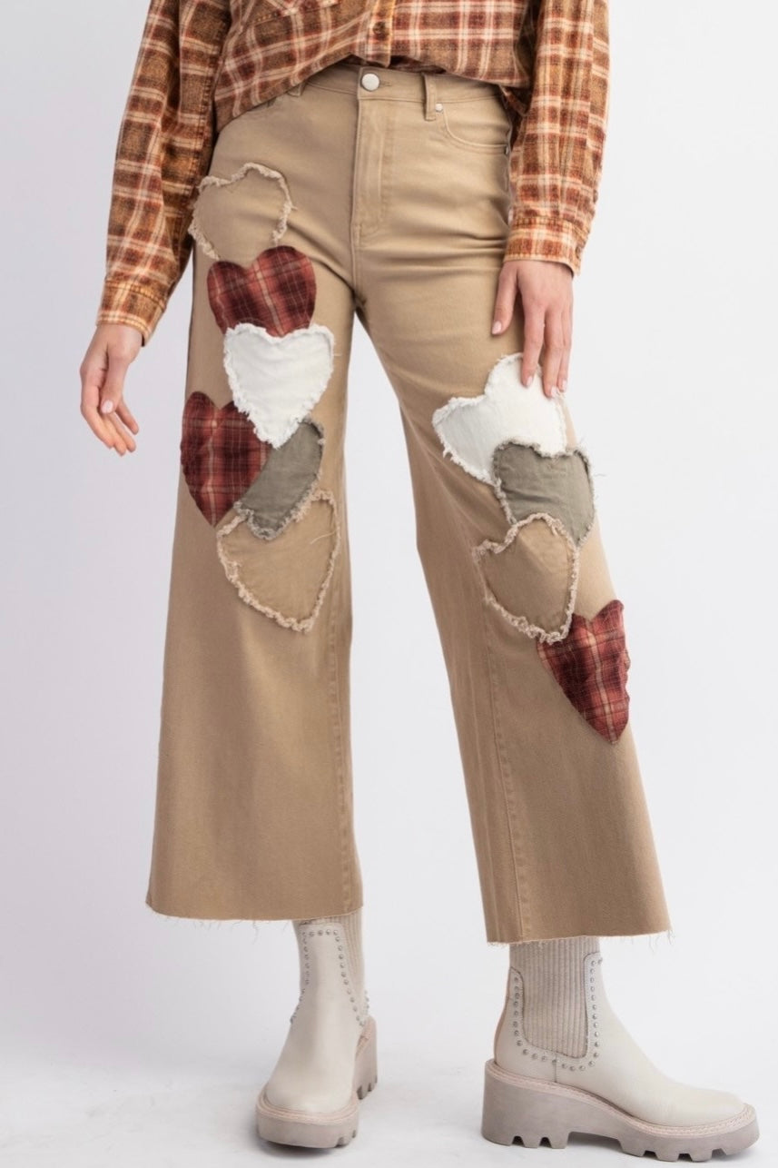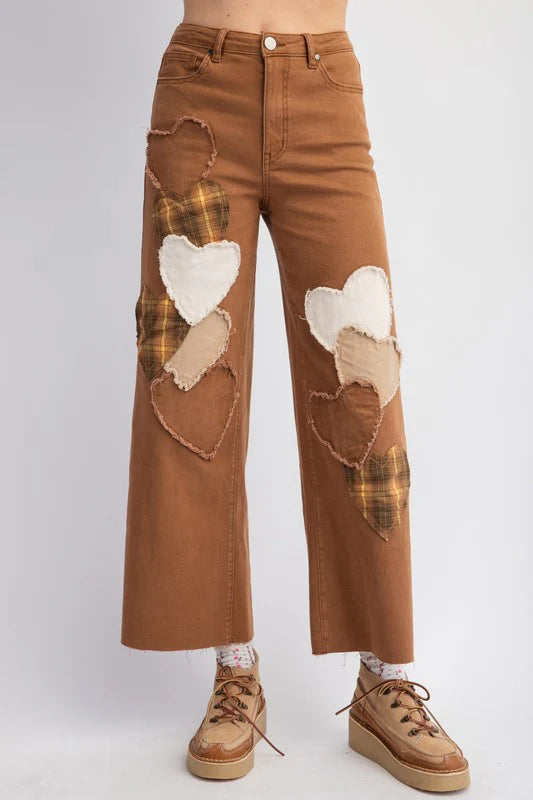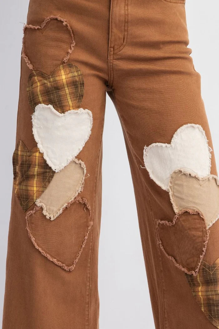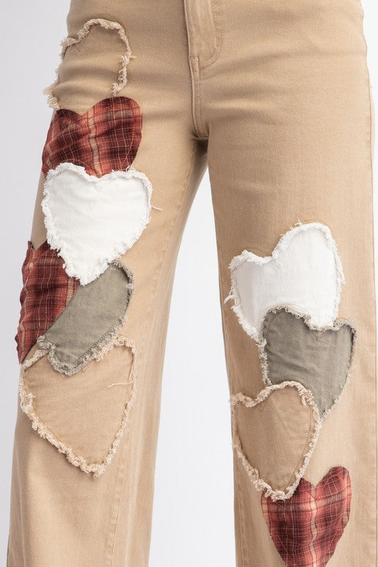 True Love Heart Patched Stretch Cotton Twill Jeans (2 Colors)