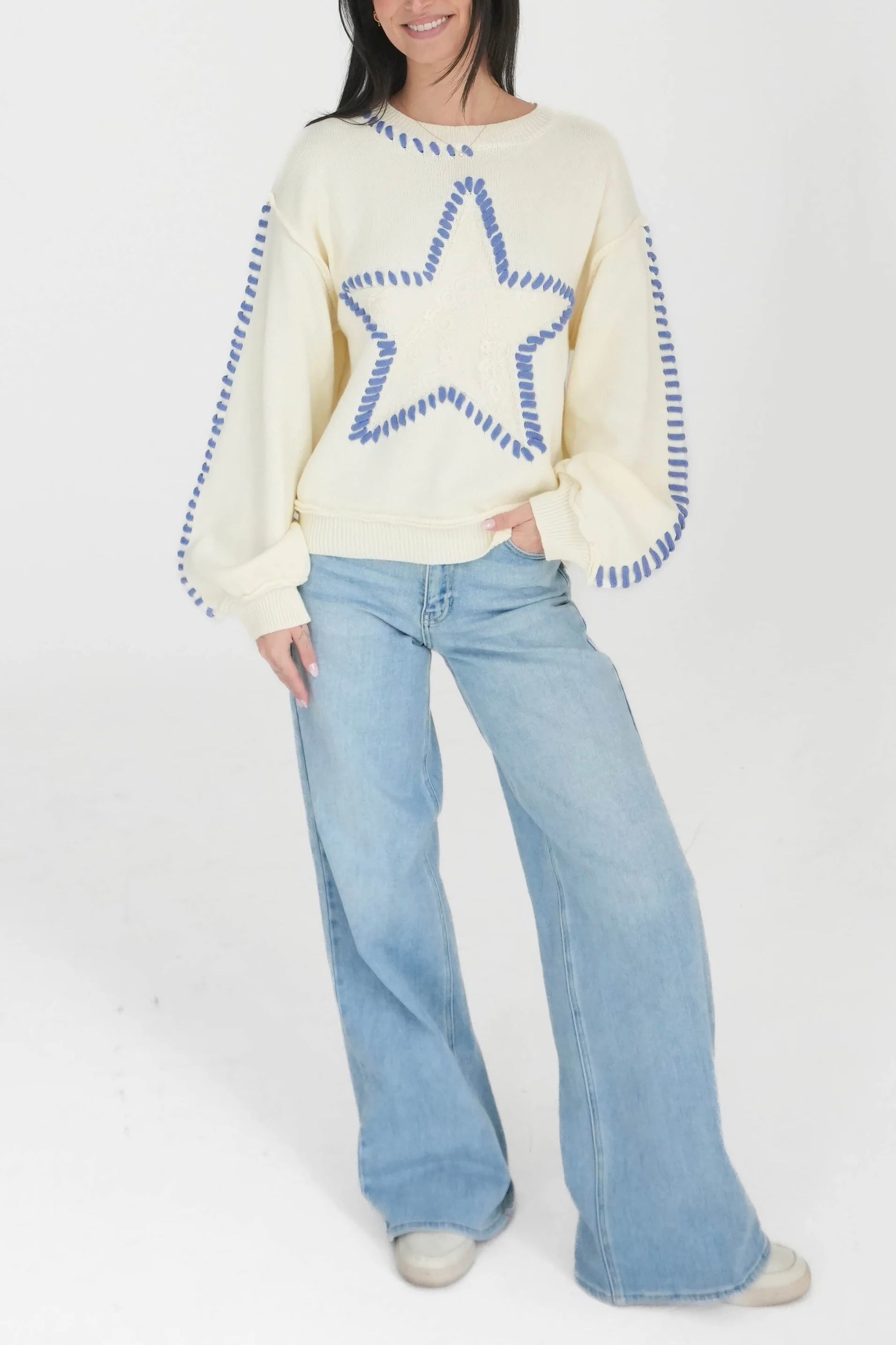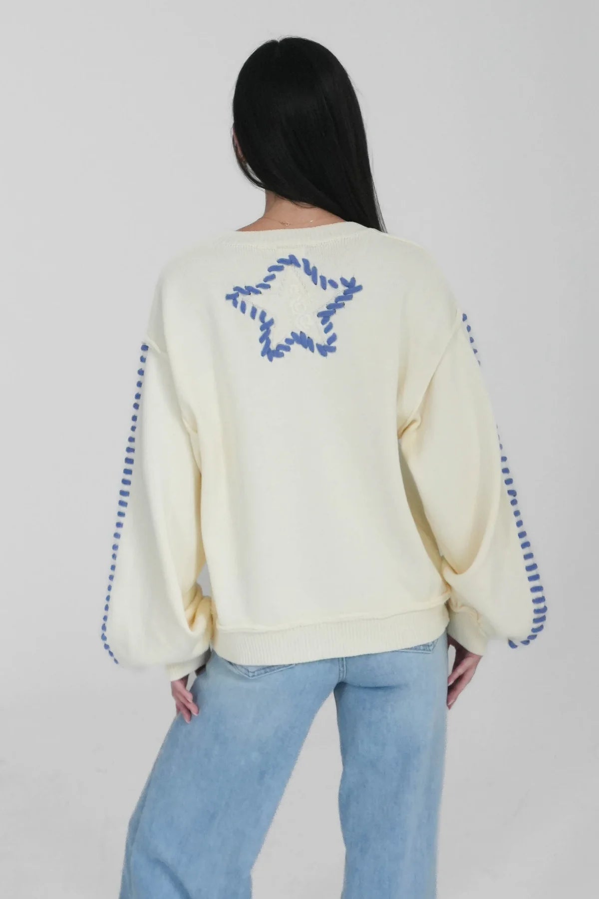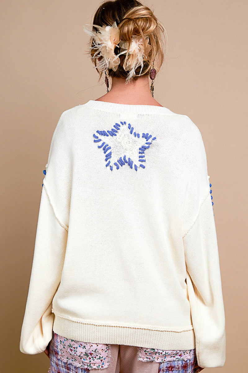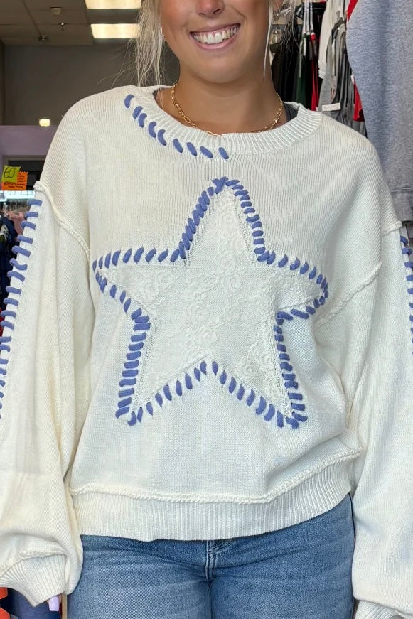 Walk The Talk Contrast Stitched Star Sweater