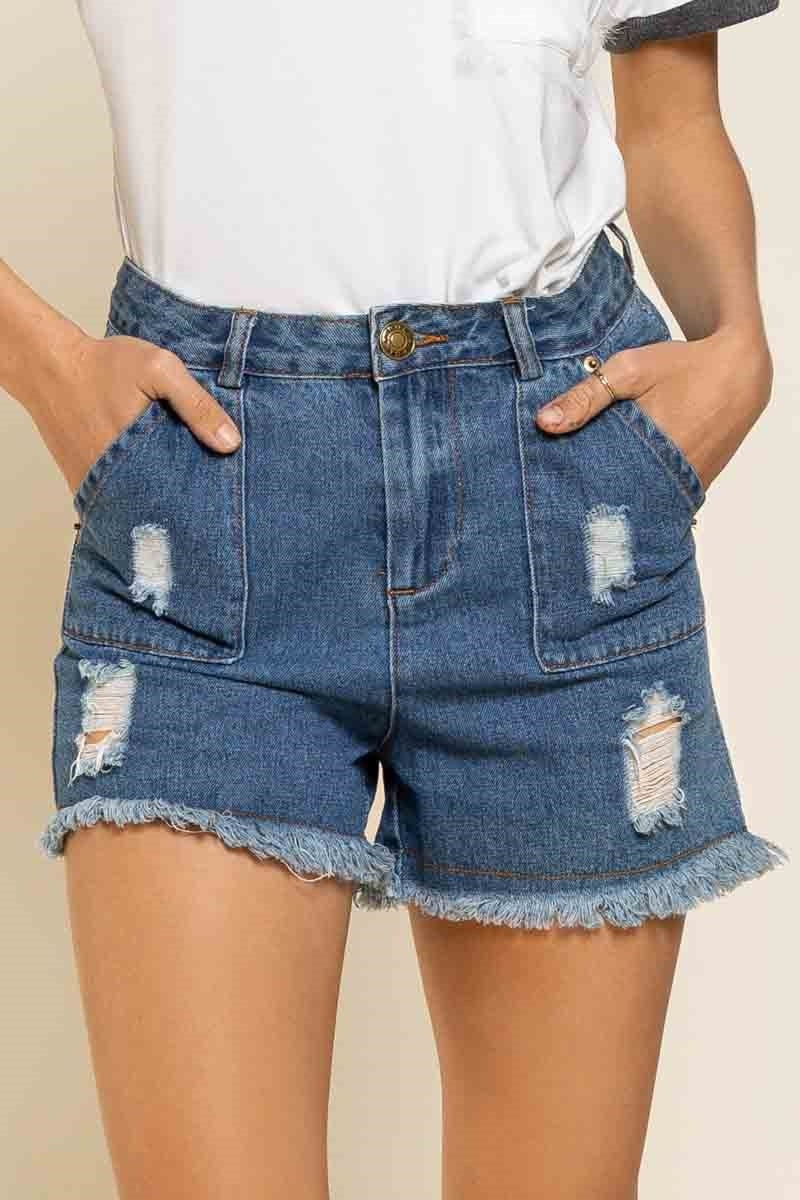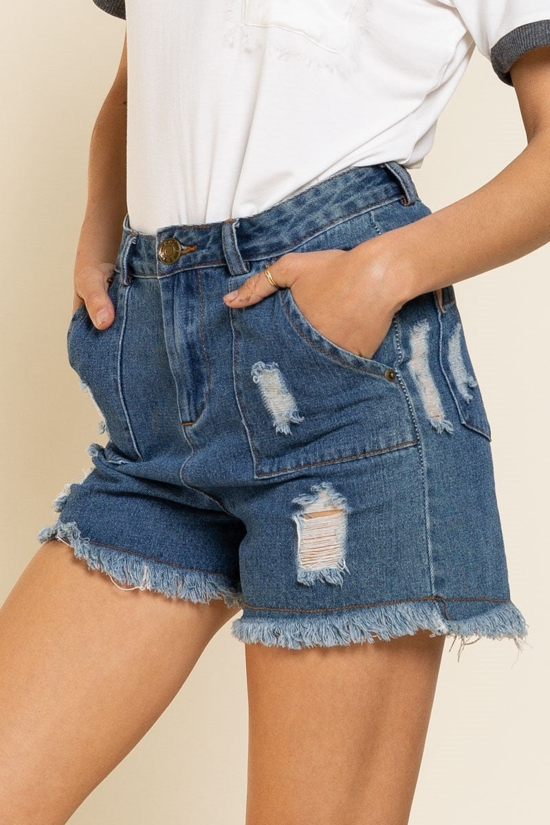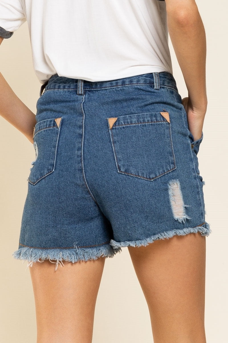 Wild Honey Distressed Fringe Hem Denim Shorts
