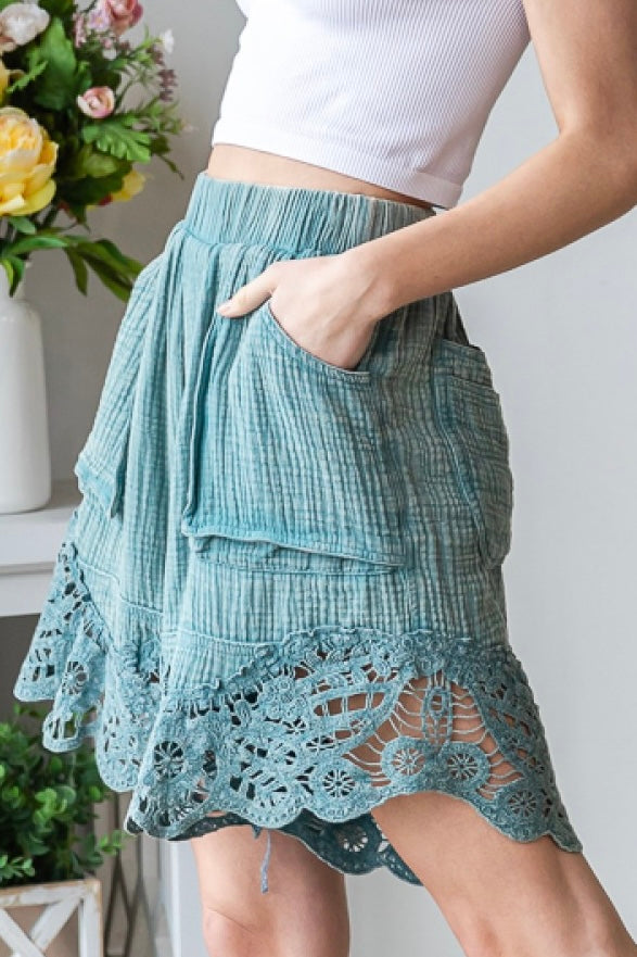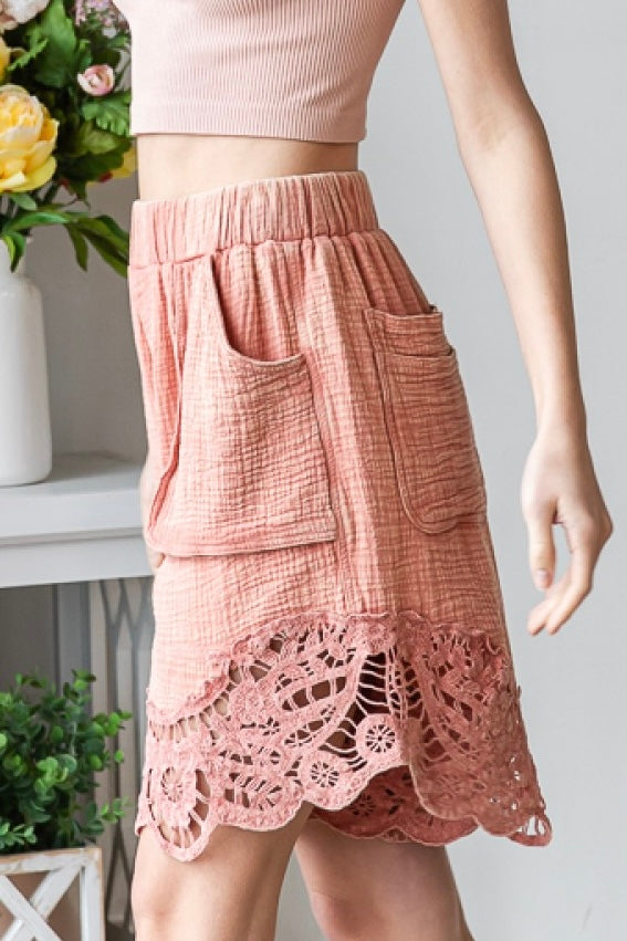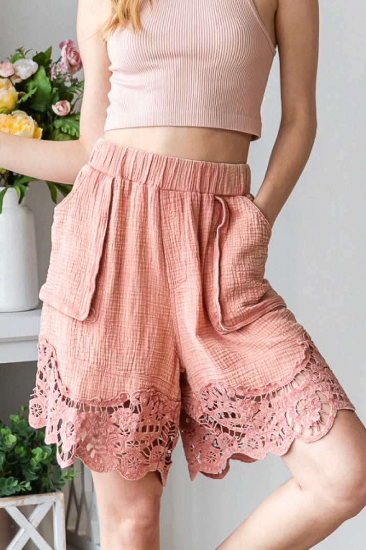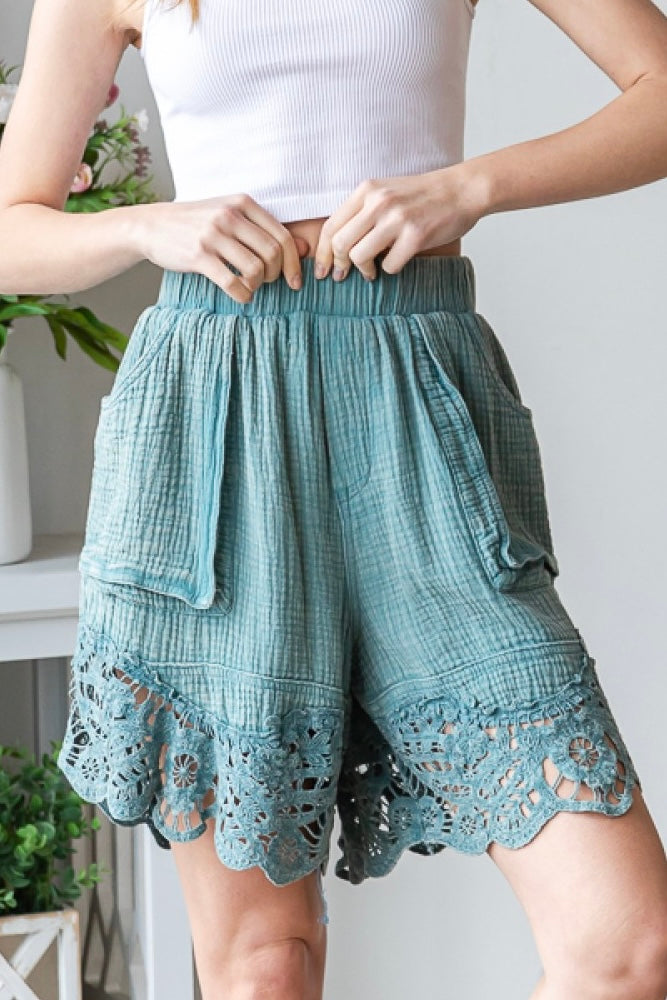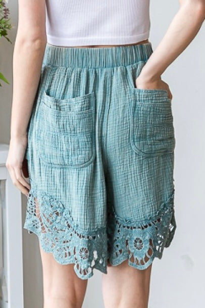 Zuma Beach Washed Cotton Lace Trimmed Shorts (2 Colors)